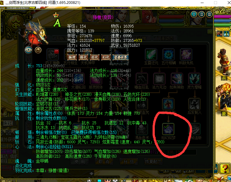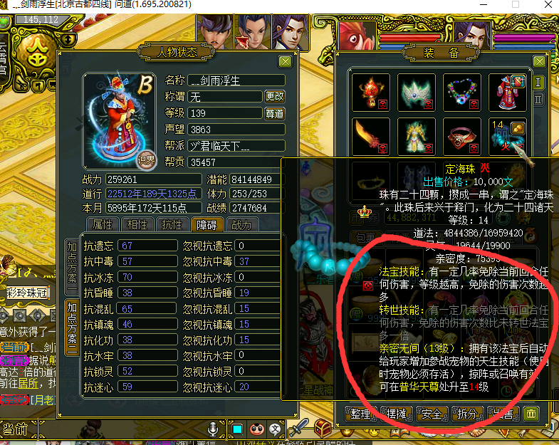 但是我的敏金宠物技能238,法宝亲密无间是13级。这个很关键,加的罩子等级越高,伤害越高。