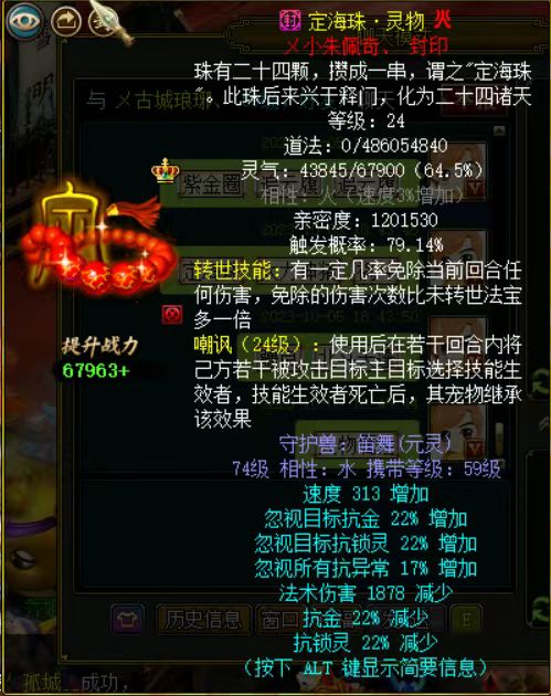 今天的主角是双线服“雪山飞狐”区组59级玩家,这名玩家很幸运,也很土豪,带仙元,爆改九,简直是问道欧皇典范。
