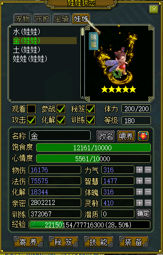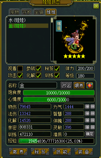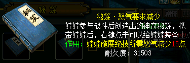 同理,娃娃的装备,秘笈也只作用于自己。