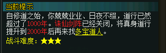 而诛仙剑阵则需要你的真身道行达到一定标准才可以进行挑战,并且挑战级别不断提升。