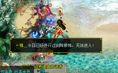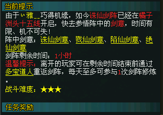 这种方法好在,如果有玩家已经完成了一系列的剑阵任务后,也可以加入他人的队伍,获得每天的一次剑阵的挑战奖励。