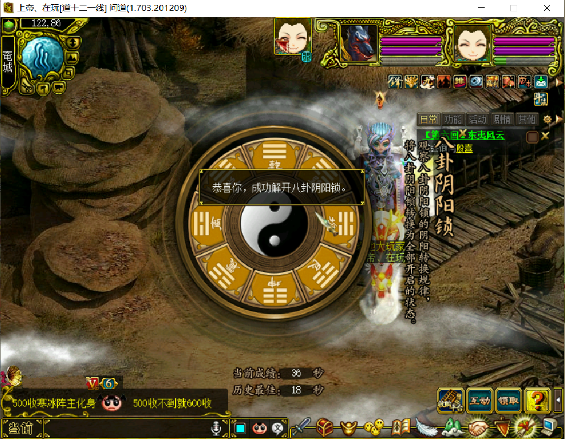 第三个是个趣味小游戏,八卦阴阳锁。先点坎、离,让这两个归为,然后剩下对称两面都好点多了,这对各位道友不是简简单单。