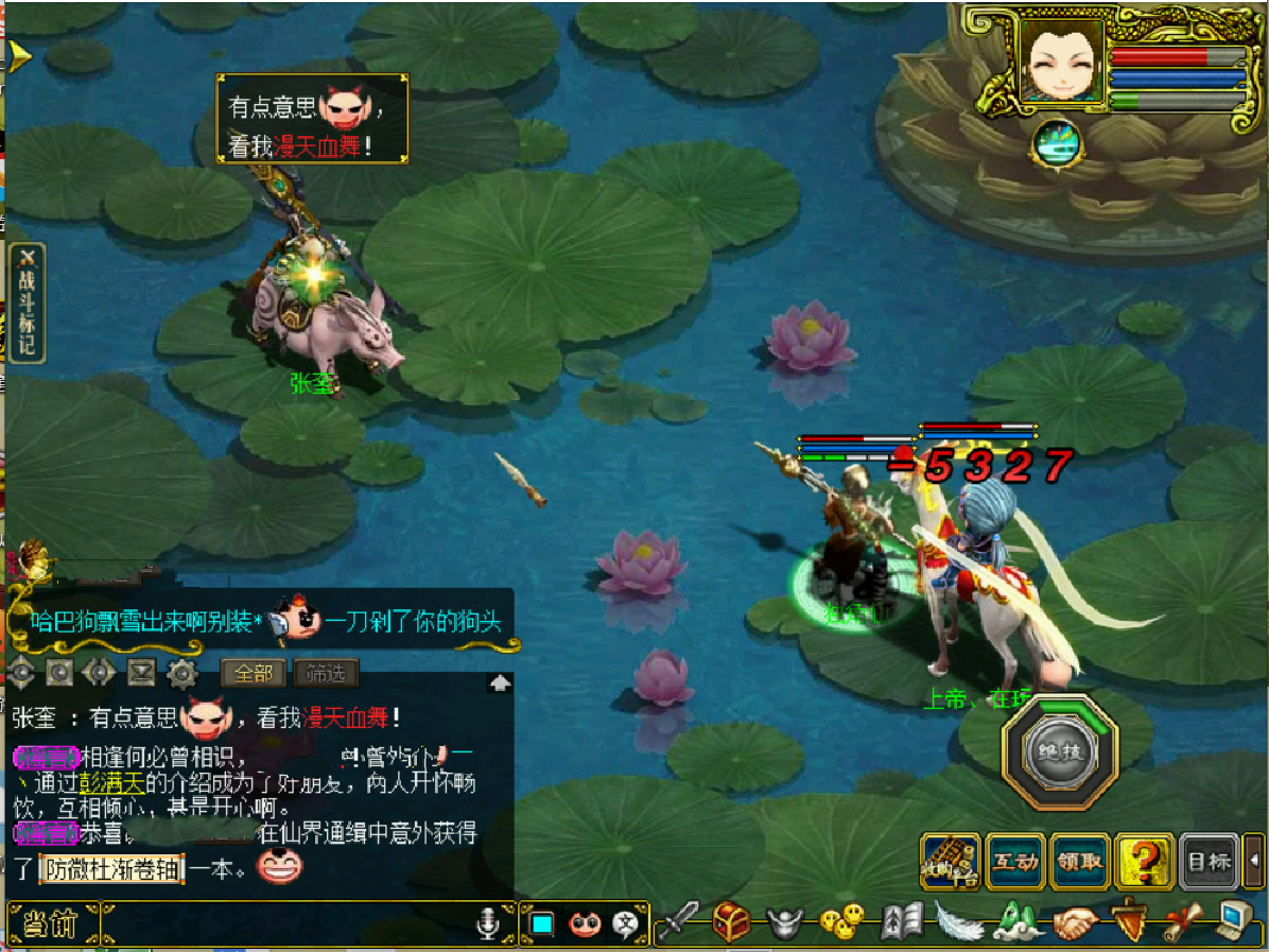 这里的打法是让人物先倒地,有亲密无间的可以直接舍给宝宝,没有的就等镜子反死即可。人物倒地后宝宝在输出,等到怪开始提示说要使用漫天血舞时,在拉人物起来,在慢慢输出,干点主怪即可,在释放漫天血舞这个阶段,镜子的触发几率会变小一点,这个怪的速度一般是比宝宝跟人物速度都快得,所以要小心怪把人打死,宝宝又把怪给打死。觉着血量差不多了,就让宝宝啦人物血量,人物输出。