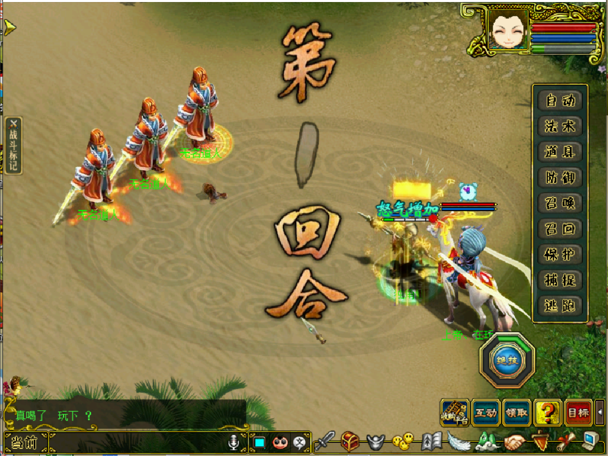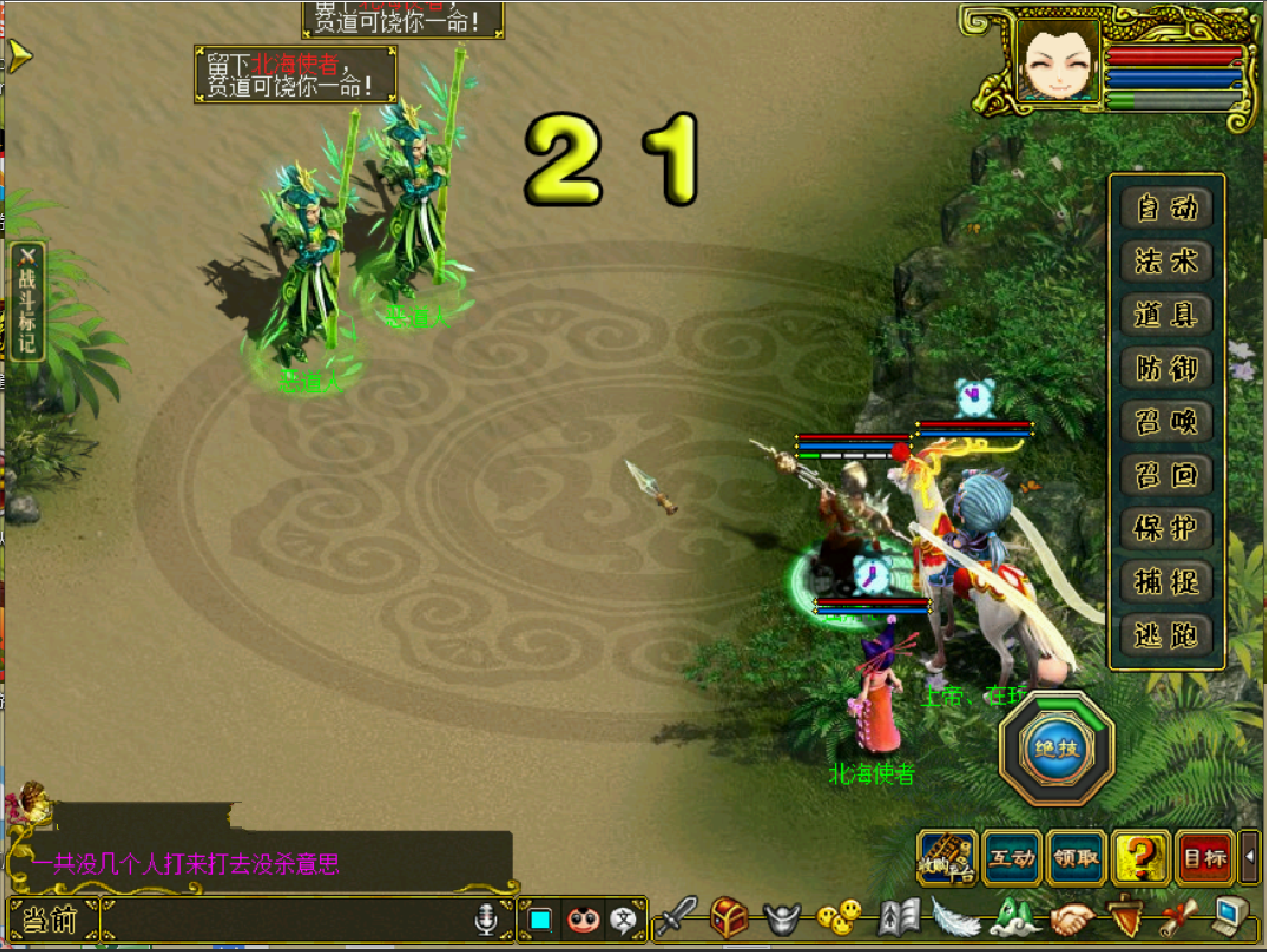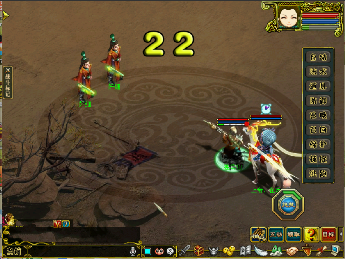 第二个战斗是是两个怪,怪会释放神通:太极溟宇,一个怪物倒地后,另一个怪物有几率会把倒地的怪拉起来,不算太难杀。