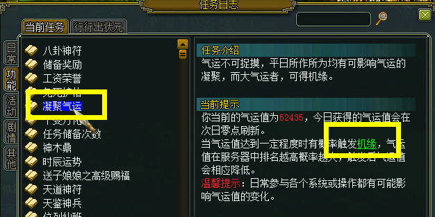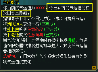 打开我们的机缘界面,最下方会记录着我们的气运值。