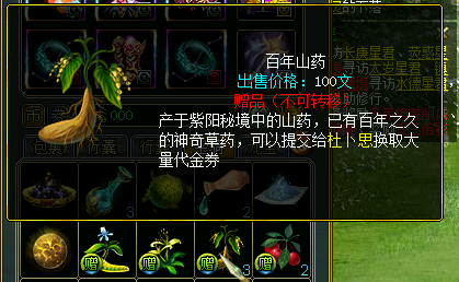 我们再来说说击败紫阳小妖以后掉落的那些特殊药品。