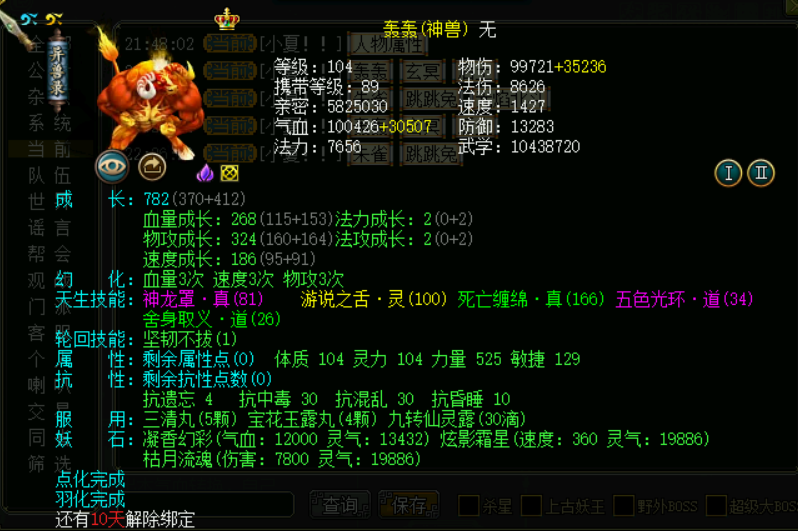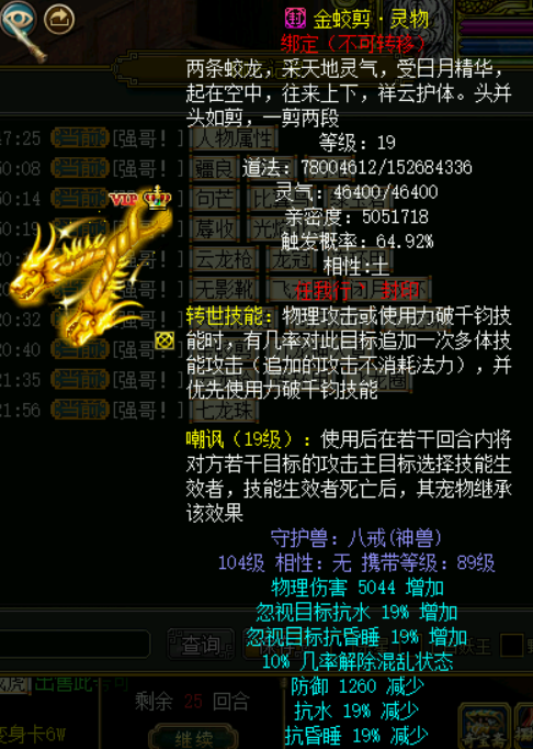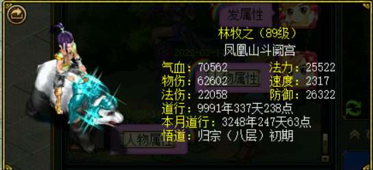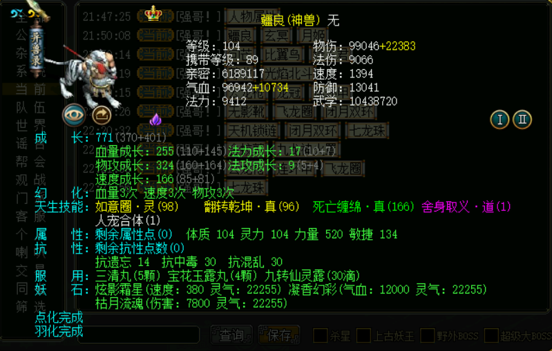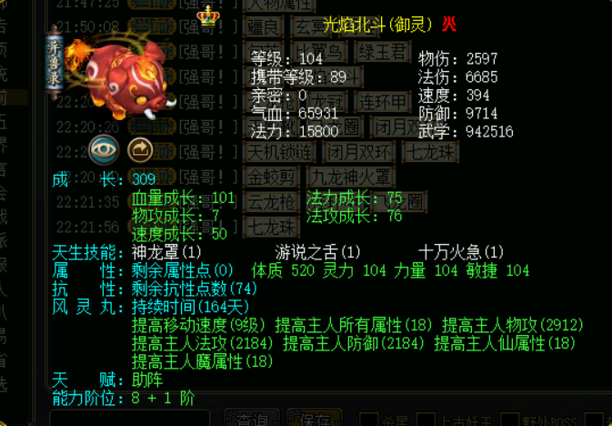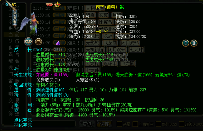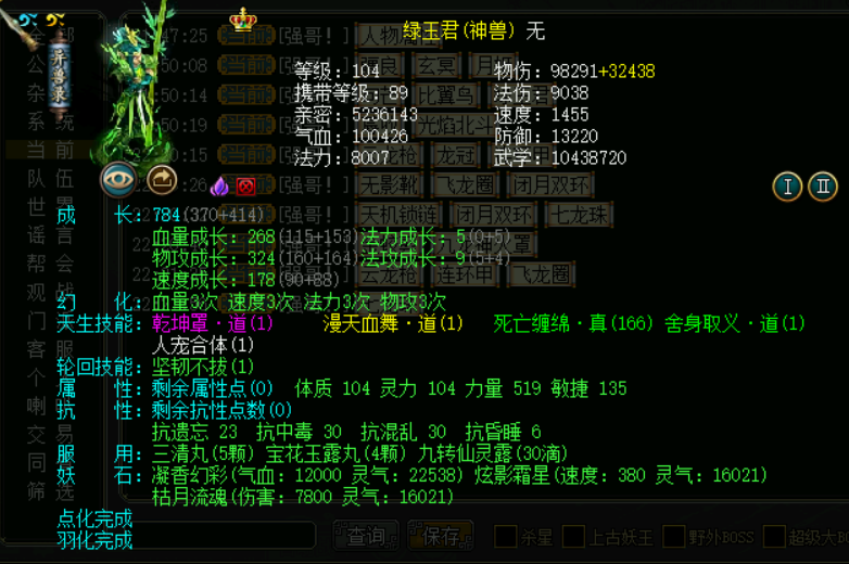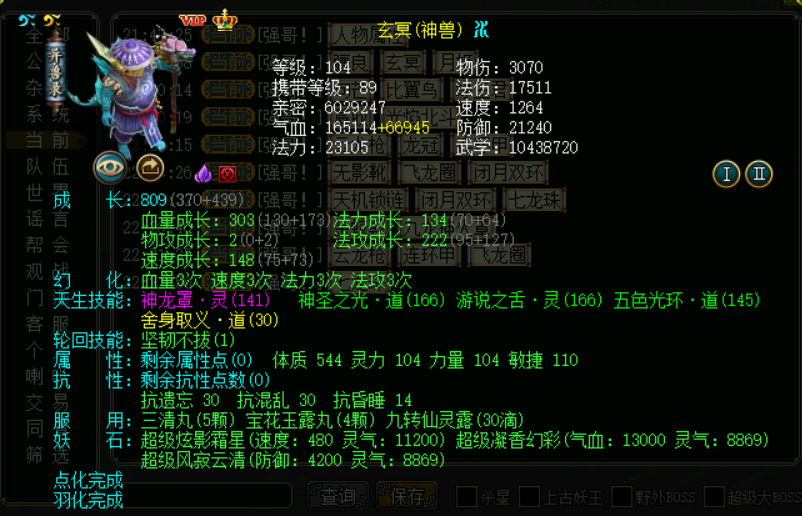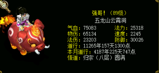 强哥:队伍的水号,是接的号,曾经也是这个区里89的大哥,有段时间没玩了,这又重新接的号,刚接号,太极、神兽、法宝都安排到位了,是一位不折不扣的老板。