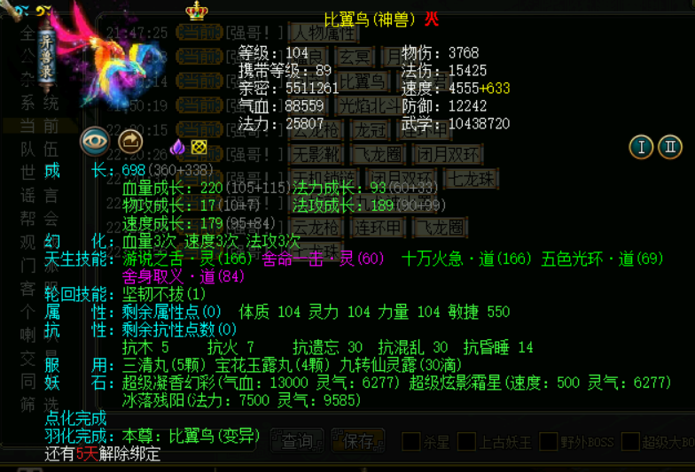 强哥:刚才也说了,装备、宝宝都没什么可弄的了,目前还差2个相5首饰,这个区目前没有,期待下次活动能给我实现我4×5的小目标。