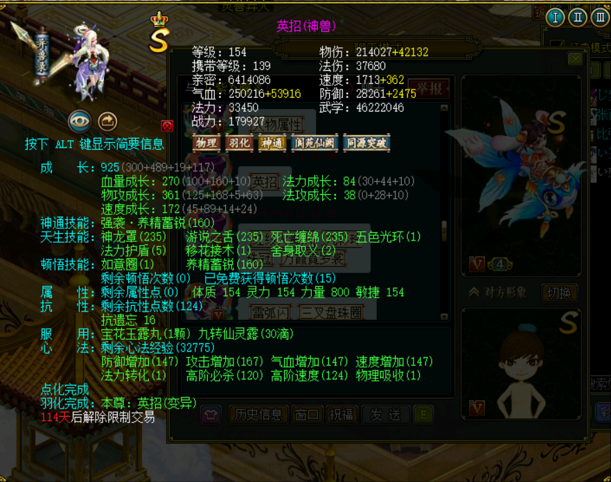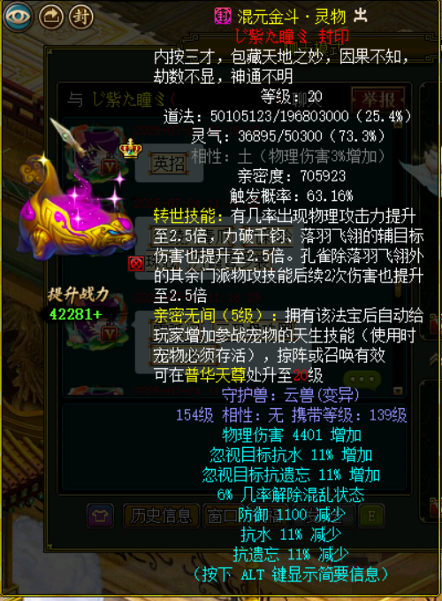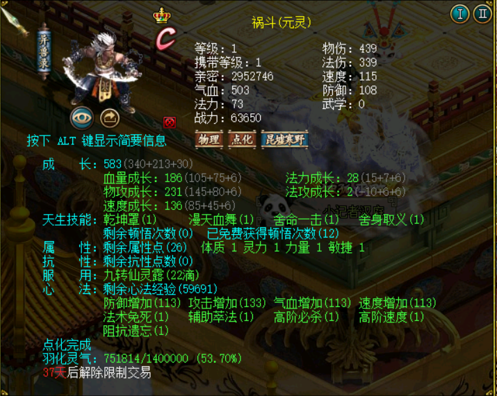 紫瞳:小记者你好,其实这次连着中元灵,自己都是不敢想象的。只能说官方开了一个特别好的活动,那就是每个月必出的“蓬莱仙府”活动,对于我这种养老的玩家那真的是目前最好的福利活动了,只要每天积攒气运值,等到活动开启后就可以凭借自己的运气,来获取相应的奖励,正是如此,半年之内获得了两颗元灵珠,当时没有考虑自己开,打开摆摊系统看了看价格,感觉也不值几个钱,索性自己召唤一下吧,结果真的没想到:第一颗就爆了一只翻羽,然后半年后的第二颗爆了一只祸斗。自己非常喜欢力宠物,祸斗的外形也是符合自己的审美,所以就留下了祸斗,把翻羽直接出售掉了。嘿嘿。