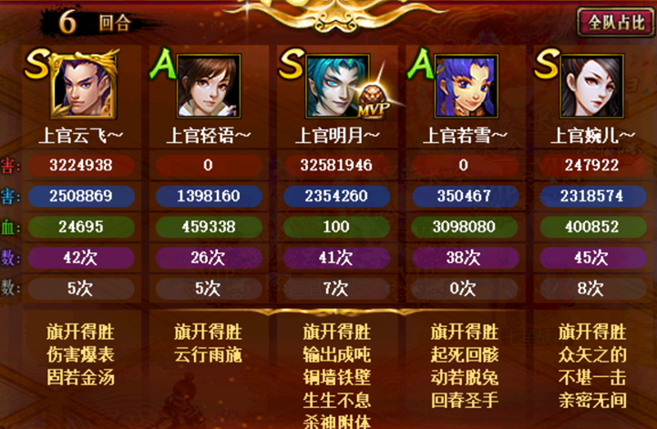 小编的孔雀是第六回合化形,所以,第五回合我们的三个打手就可以后发了。