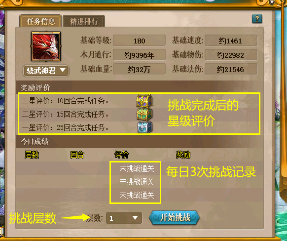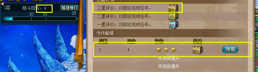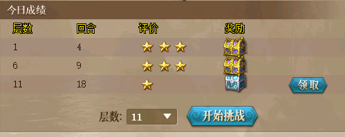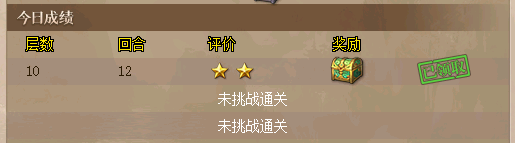 挑战结束根据我们完成战斗的回合数,进行星级评价。