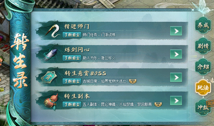 这个“转生录“以后每天都会需要打开,用来领取”了断前尘“内的日常奖励。