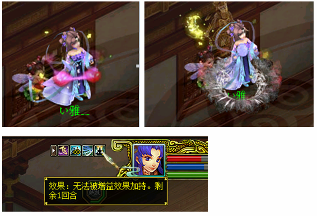 避世(1/1):施法攻击主目标时,有30%~50%几率驱散目标身上大部分增益状态,同时令其无法受到大部分增益状态影响,持续1~3回合。