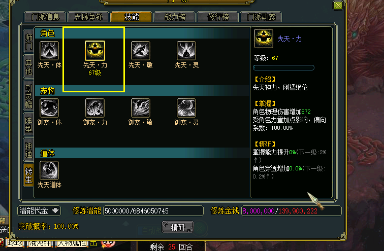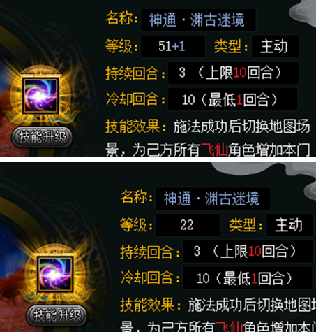 不光是技能的提升,神通等级也相应的提升了30级。