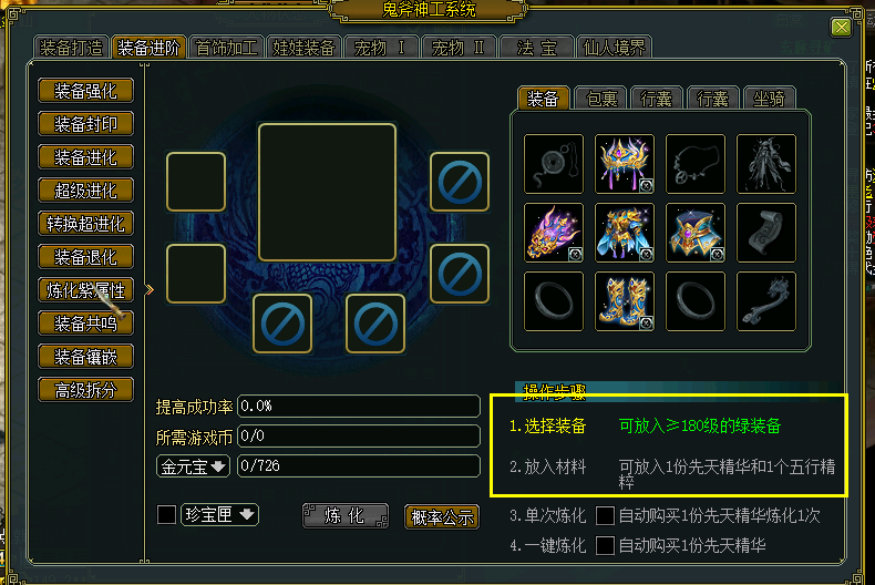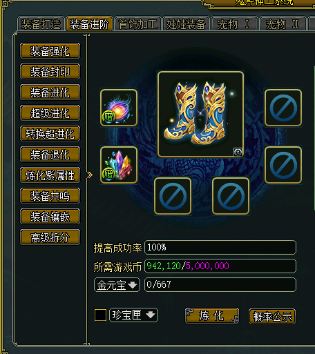 (炼化紫属性只能使用游戏币)