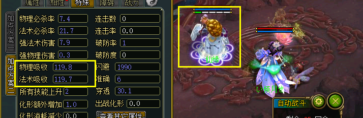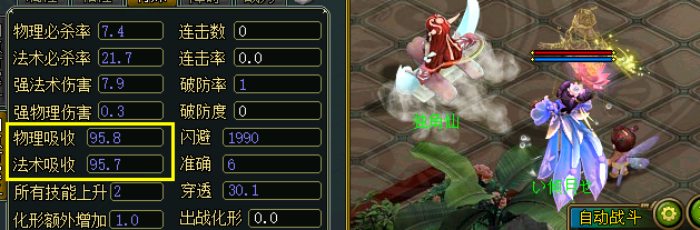 这是进入战斗后角色的吸收属性。