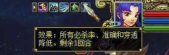 风障(1/1)施法攻击目标时,有30%~50%几率降低主目标所有技能等级30,持续2回合,不可叠加。
