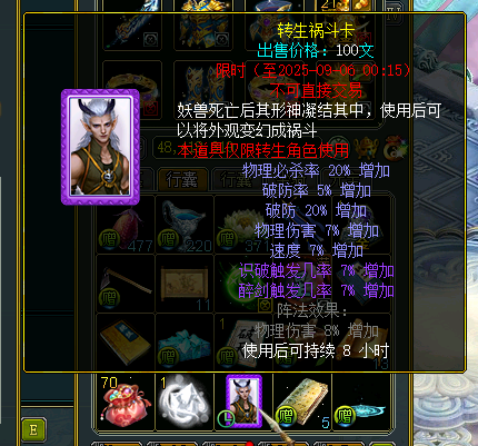 需要注意,转生变身卡上的属性,需要你自身具有该技能才可以生效。