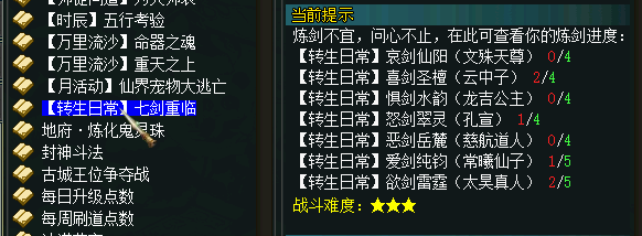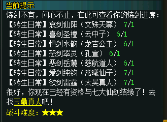 当我们选择捐助后,我们的任务栏就会刷出来“七剑重临”任务。