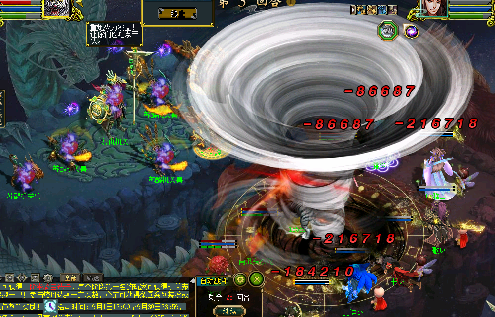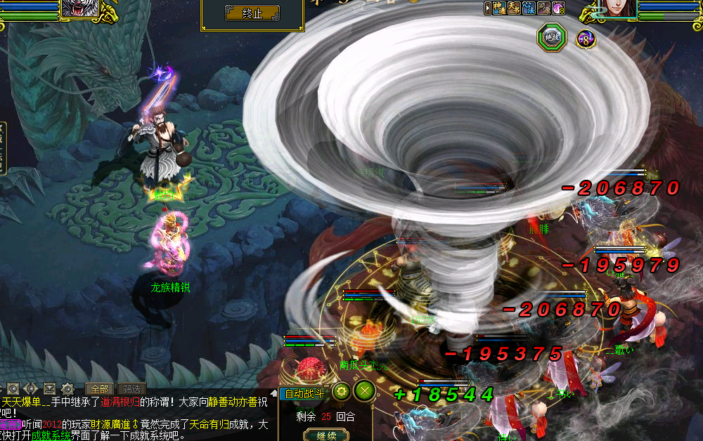 这个战斗没什么特别的策略就是伤害有点高,龙也是击杀后不消失,会复活,拉好辅助状态就行。