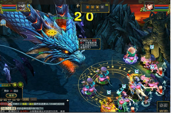 5、一回合内吞天被1/5个单位物理攻击,下回合进地裂阵,吞天的物理伤害和物理吸收提高,攻击时概率造成土系障碍。