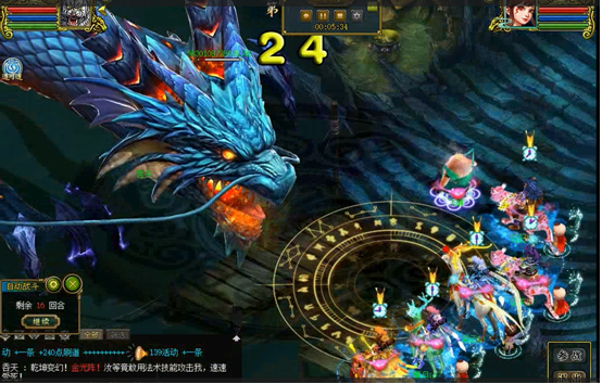 4、本回合比吞天出手慢的单位有1/2个,进入风扬阵,每回合5个单位被神圣,且吞天攻击时概率火系障碍;