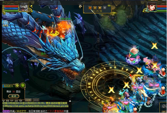 11、上图中吞天的血量仅剩580w了,也就是说到了我们需要一回合收场的地步了,那么这回合木继续拉心,其他角色全员后发。