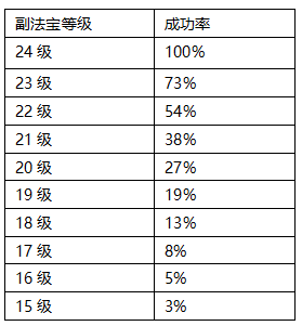 下面是不同等级副法宝的融合概率,供大家参考。