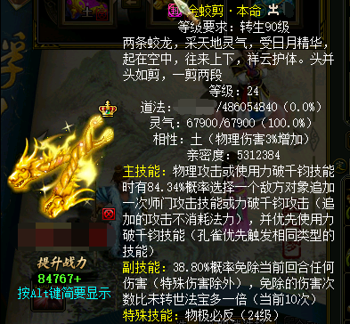 但是从24级以后,提升法宝等级不会增加主法宝的技能概率,只会增加副法宝的技能概率。