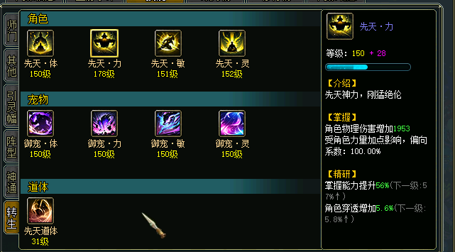 提升突破等级,需要消耗代金券+潜能/金钱/云篆天书,可以增加角色的精研属性。