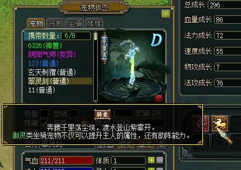 这个坐骑还是御灵状态,可以直接乘骑。
