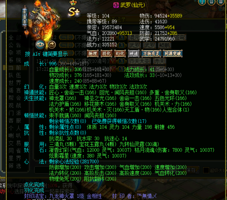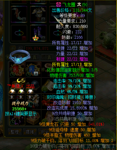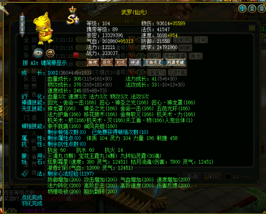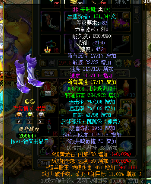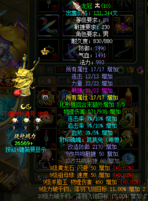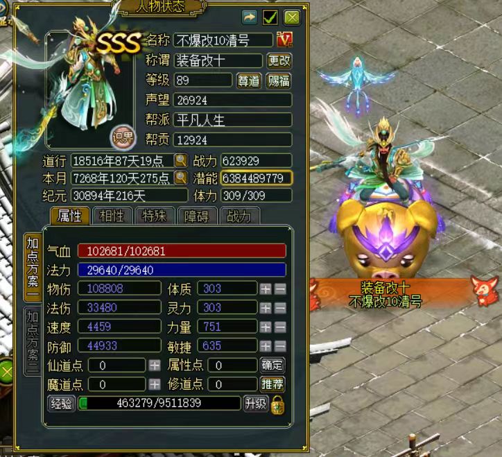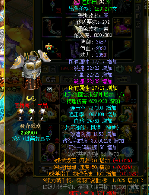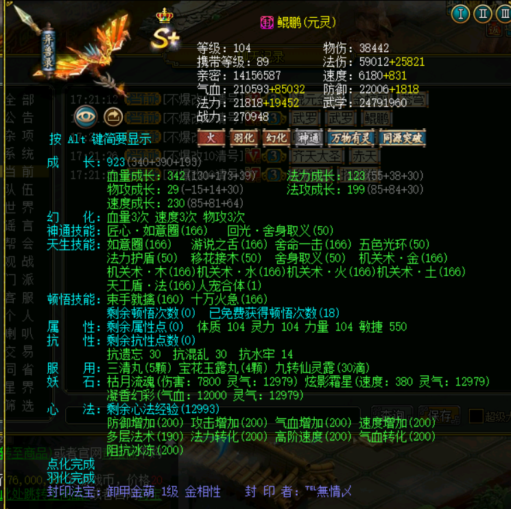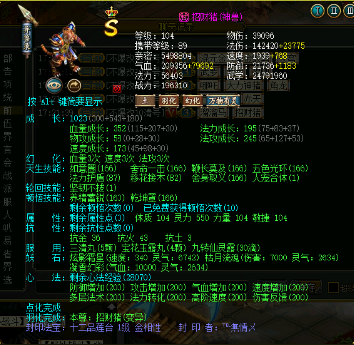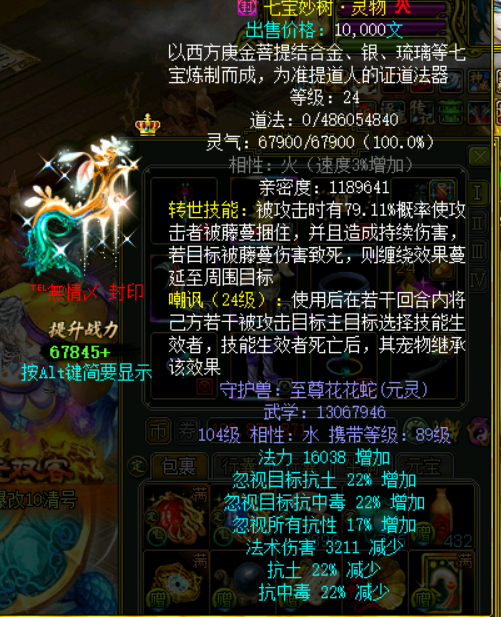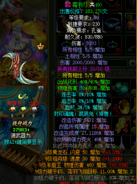 无情:现在这个号慢慢的上道了,刚买的时候就弄浮生,好多浮生没有,自己抽,好几个自己强化到了100,然后悟道从9点到了11中了,79级的时候全套改9镶嵌9了,现在升级89了玩家比较多,也是自己梦寐以求的改10,没有玩过改10号,现在自己打造改10,也算圆梦了