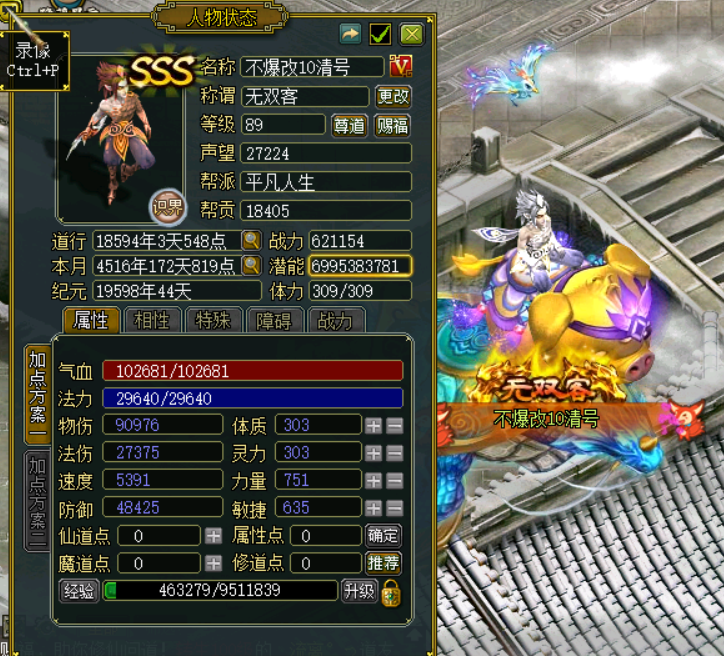 无情:来华山大概是23年中旬,因为十年前玩过69跨服,中间十来年没玩了也不知道玩那个区,就看华山是老区,刚来就认识一个道友玩79,在79玩了大概一年把,努力打造打跨服,自己玩三个号,但是总是挨打,于是就碰见现在的队友画情,忽悠我来69跟他玩,一开始是玩69慢慢升级89的,他告诉我投资是十万来就能拿道尊,结果自己79的号直接仍商人了,道尊是好拿,但是不是像他说的那样投资十来万躺赢拿道尊[破涕为笑]于是就这样来到了华山区组玩89级